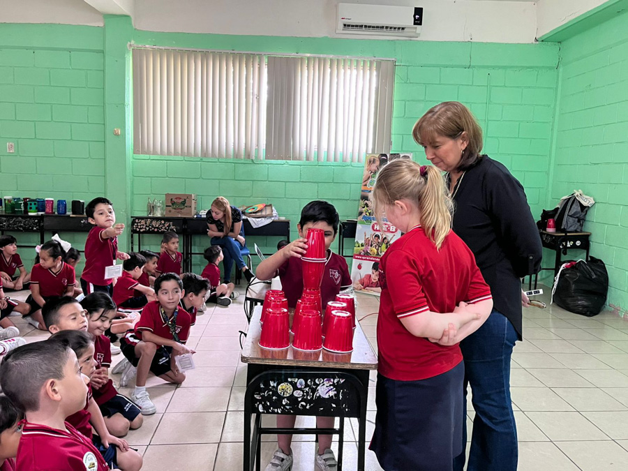 Aprendiendo con H-E-B es un programa educativo que visita escuelas promoviendo los valores de la ecología, la familia, el deporte y la nutrición a través de pláticas impartidas por expertos en la materia.
